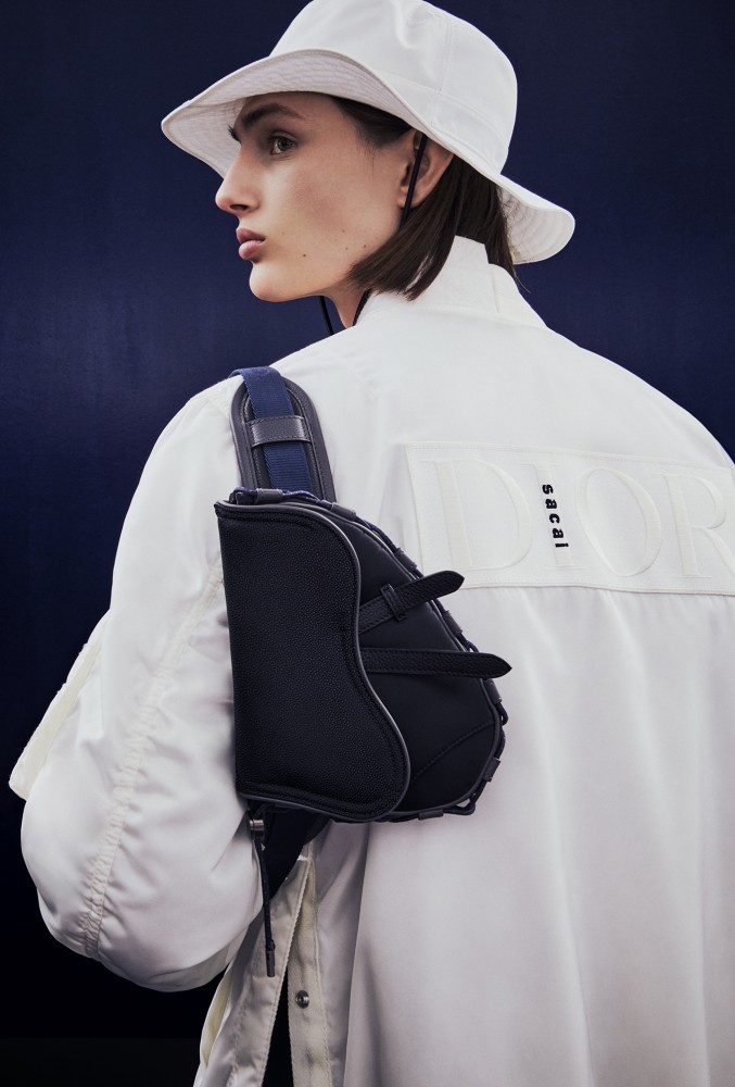 Meanwhile, Dior’s iconic leather saddle bag is equipped with nylon drawstrings and a water bottle that add a refreshing practicality to the product. Though, practical doesn’t mean simple, as the Dior Snow and Dior Explorer boots have proven. The fine cream and black shoes are triple-soled and the CD Icon logo is decked out with gold- and silver-finished brass, as well as Sacai’s signature pearls. Instead, the modern street-wear x luxury line comes off as a fine-tailored, modern masterpiece.