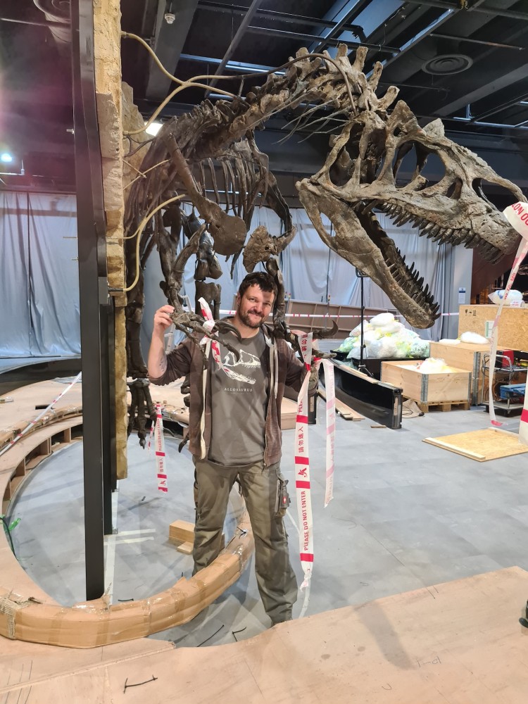Knötschke: The bones come from rock. They’re just found in a field so they’re not completely freed from stone. You have to free them completely from the rock and the cleaning process usually takes a very long time. In this case, we had six preparators prepping on one skeleton. The bones were scanned by our team in Italy and they went to Switzerland to be assembled so it was nice to see all the things connect. The FIF team helped us with all the problems regarding transport and Michelle was always fighting for the entire exhibition. I’ve never done an exhibition of this size before and I’ve been working with dinosaurs for over 20 years. This was the chance of a lifetime.