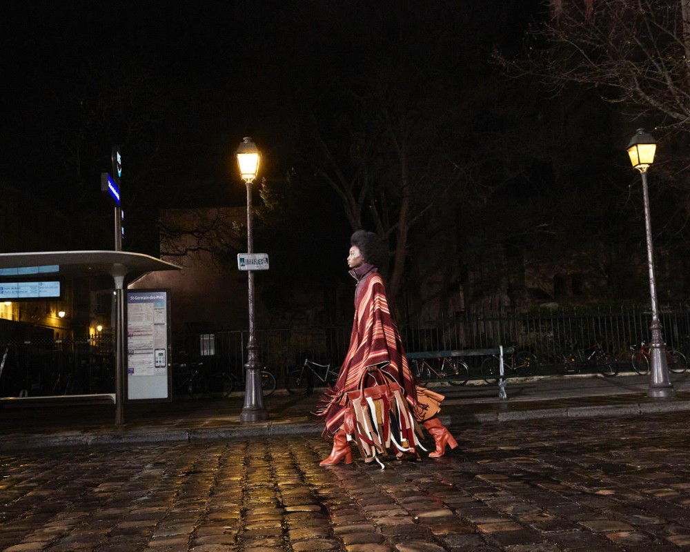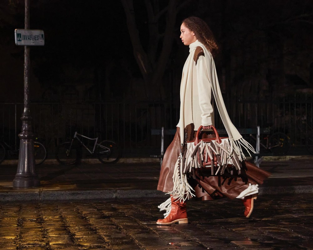 Gabriela Hearst titled her debut collection at Chloé “Aphrodite”, and applied the same sustainable practices and commitment to the greater good that she did to her own eponymous label. Dresses, capes, and other winter-friendly outerwear were crafted in modern, feminine silhouettes with bohemian twists. Hearst adopted the motto “new isn’t always better” and made a statement by repurposing the house’s iconic Edith bag from the early 2000’s-strips of leftover cashmere and wool, and also partnering with Shelter Suit, an NGO that provides shelter for the homeless through outerwear made entirely out of upcycled materials.