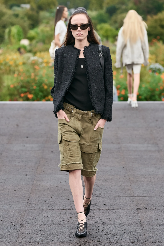Matthew Williams may have revisited Givenchy’s archives for SS23, but the former Kanye West collaborator didn’t forget his American street culture roots. His show at Paris’s Jardin des Plantes combined the city’s everyday elegance with the designer’s signature New York cool. Tweed jackets and iconic little black dresses were seen alongside overalls and military- inspired looks, resulting in what one showgoer described as pieces that “feel like they could fit into a woman’s wardrobe very easily”.