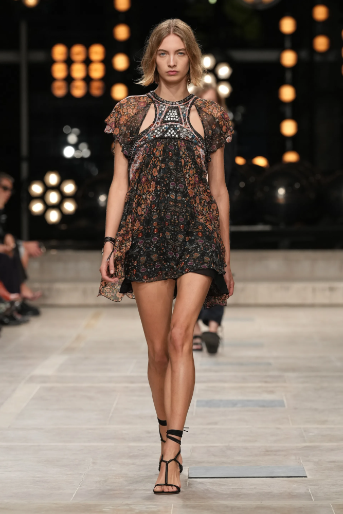 Long known for her joyous embrace of life, Isabel Marant returned to her roots for SS23 by remastering looks from her brand’s earliest days. Racer-cut tanks, swingy little dresses, metallic-threaded floral silk chiffon and laser- cut suede jackets gave a little boho and a whole lot of cool. Everything was abbreviated, exuberant and a testament to the timelessness of the style of the house and its ability to constantly reinvent itself.