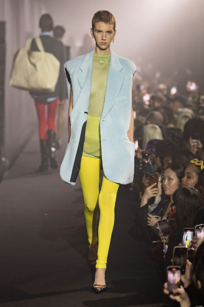 “I dont want to show clothes; I want to show my attitude, my past, present and future.” Presented in the cavernous Printworks club, Raf Simons’ SS23 collection was one of his most diverse and at the same time barest and most minimal to date. The fluorescent leggings, tailored jackets and sleek bodysuits that ran through the show shifted the focus to the body in what one showgoer described as “a sweaty celebration of corporeality”.