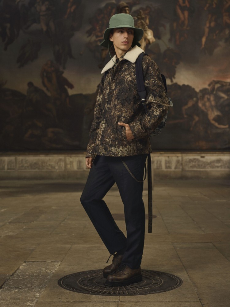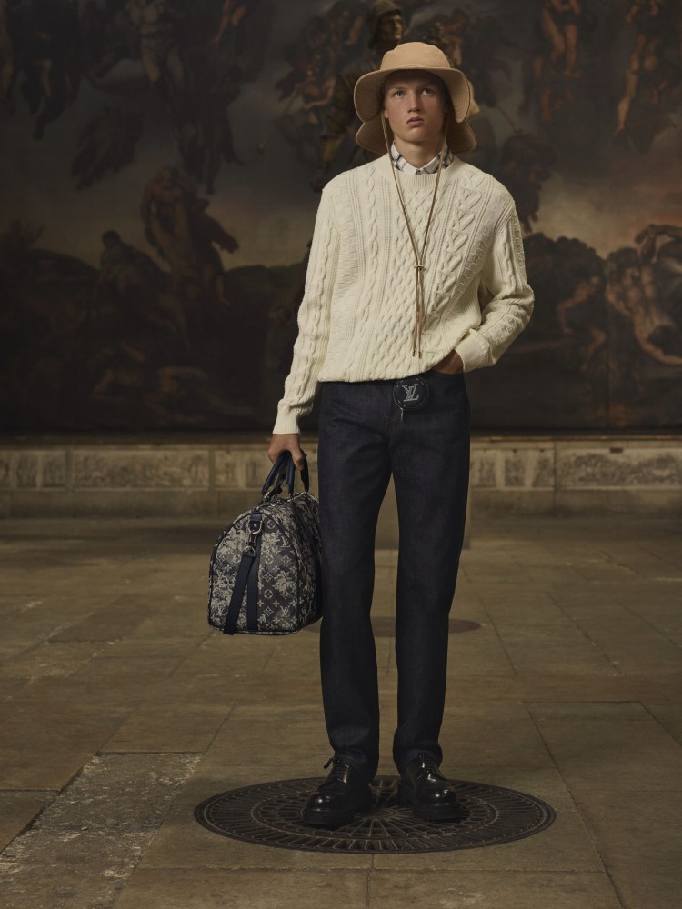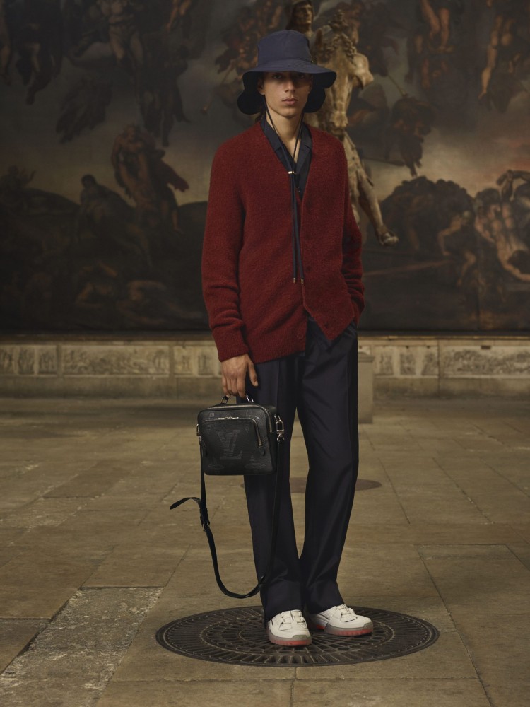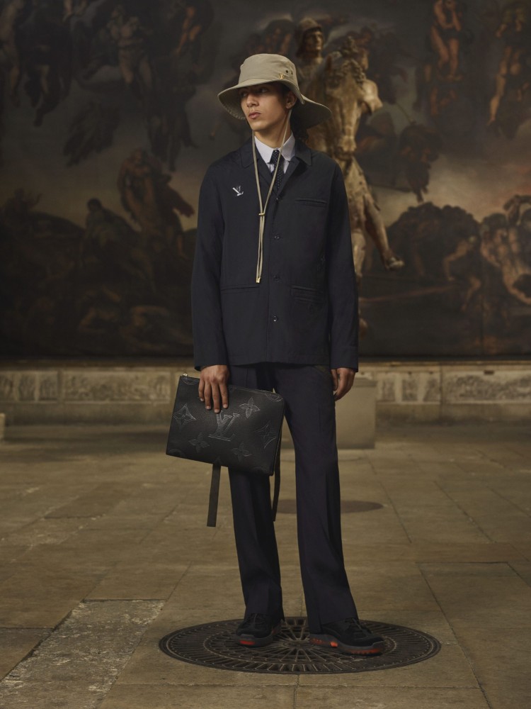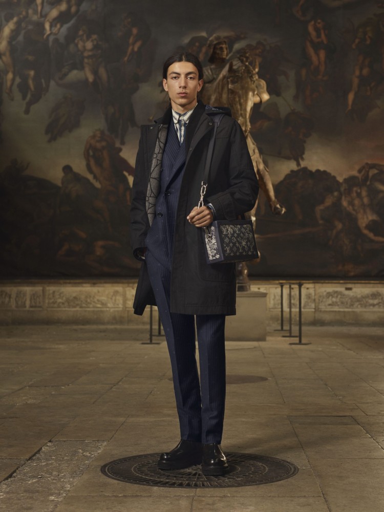 For Pre-Spring 2021, Abloh delivers a range comprised of clean cuts and crisp tailoring in moody fall/winter hues. Outdoor jackets are decked out in a brown-toned LV camouflage pattern, deep blues dominate formal suits, and classic raven-black essentials run throughout. The standout botanical leaf monogram of the collection also appears on a flap trunk messenger, signature backpacks, and a full denim look.