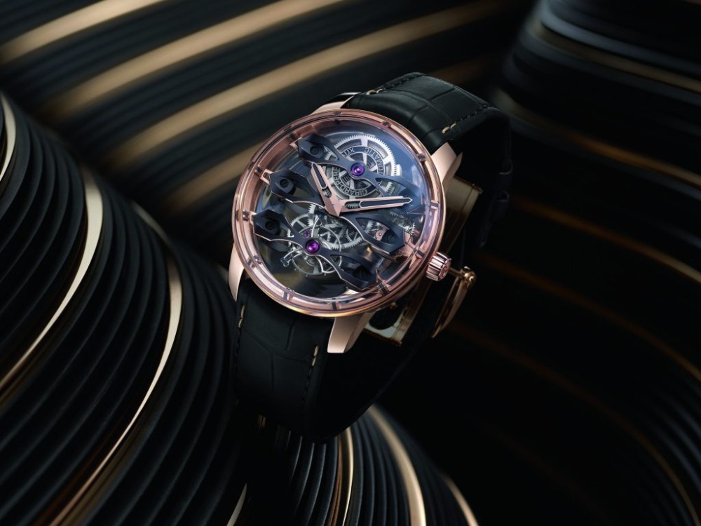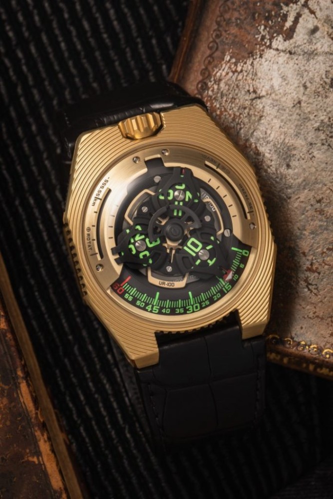 The UR-100 Electrum sees the watchmaker’s satellite hours together with minute indication, as well as an indication of the kilometres Earth travelled around the equator and along its orbit. The complication was first launched in UR-100 Spacetime and this year housed in a grooved yellow gold case with a greenish tint. The reference is limited to 150 pieces worldwide.