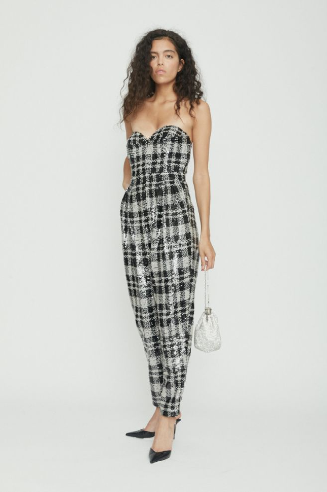 When it comes to show-stopping looks, it’s easy to understand why the designers behind Rotate just get it. Founded by two Danish influencers, Thora Valdimars and Jeanette Friis Madsen, Rotate promises chic and affordable statement ensembles, season after season. What’s on top of our Christmas party wish list? This strapless tartan sequinned jumpsuit. Wear it with black pumps and an oversized black blazer for your next night out.