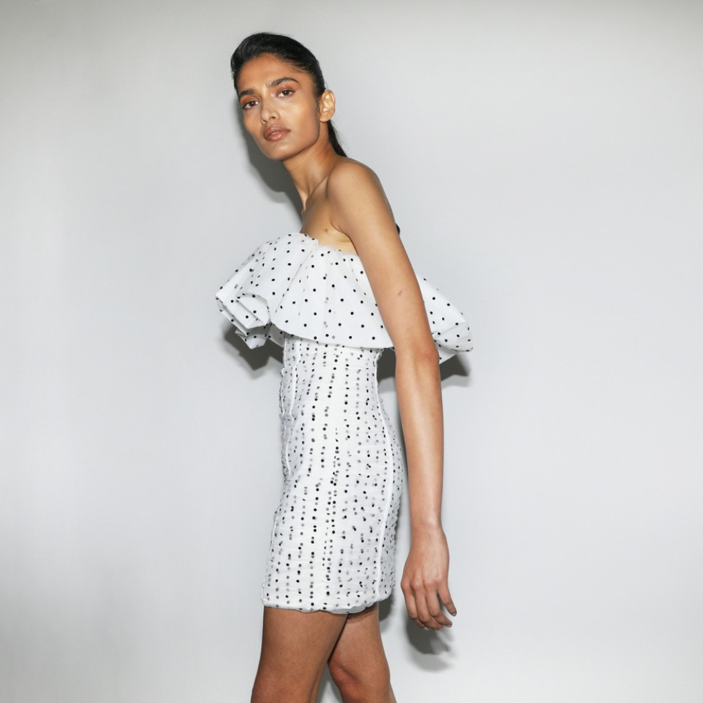 Planning ahead for a New Year’s countdown party? This Self-Portrait dress is a great pick with its exaggerated ruffle and all-over polka dot pattern. Keep the neckline bare and simply pair with earrings when it comes to accessorising.