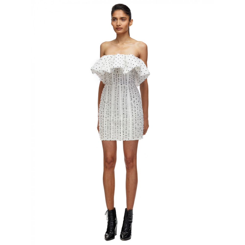 Self-Portrait dot mesh frill dress