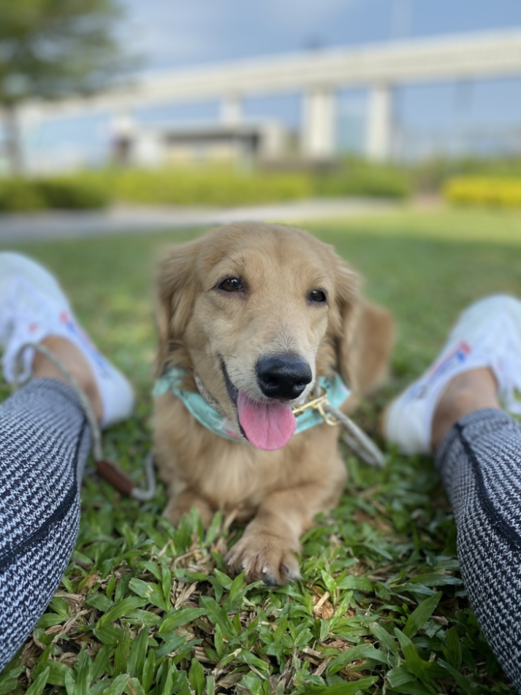 My story: I was a breeding dog who was dumped after years of having puppies. I developed a hernia, and was picked up by L.A.P from a vet in Prince Edward and brought to Tracy’s home in Central. I was so happy to be rescued that I kissed her all the way home. That’s where I met Pogi, whom I lived with for a month! We loved to cuddle and spoon together while napping. I now live with my two mommies and my new sister, Peanut – and my new name is Buttercup!