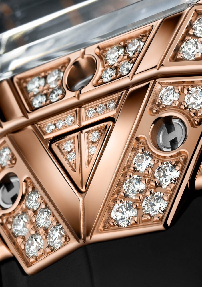 The new watches retain the distinctive features of the classic Big Bang watches, such as the six H-shaped titanium screws running through the watch bezel, the sandwich construction, the signature lugs on each side of the case, and a screwed crown moulded over with rubber.