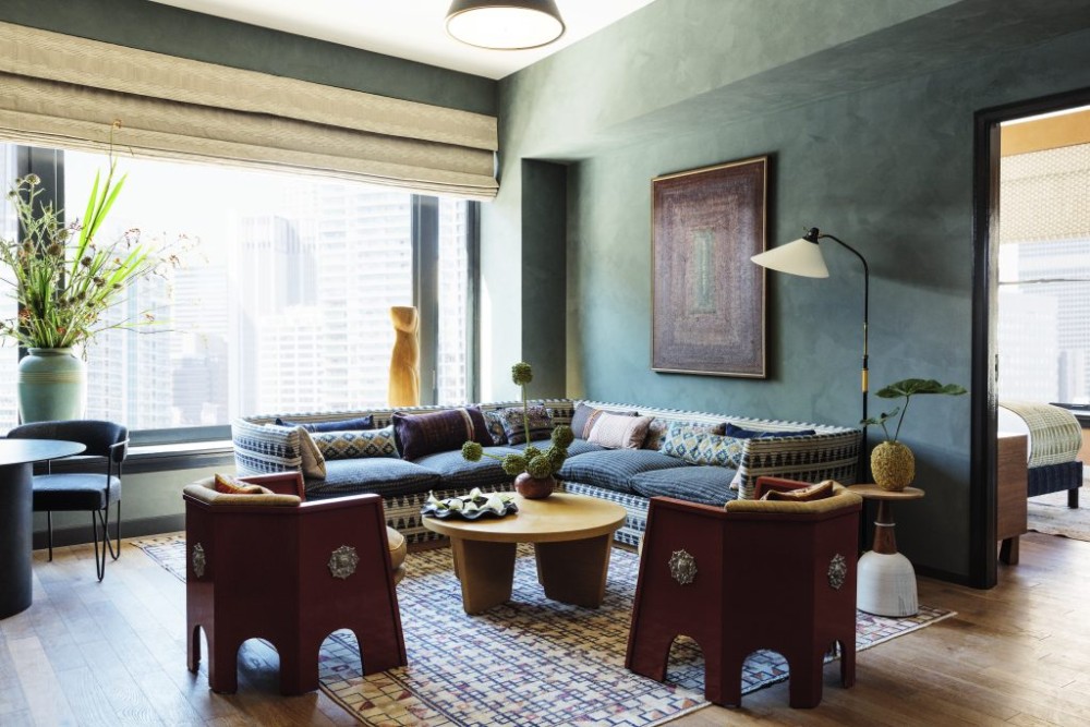 Though, for Hongkongers living in 600 sq ft apartments, maximalism may end up looking more like clutter. Wearstler advises, “Open-plan designs are a great way to release free space and create flow. Zoning with strategically placed furnishings or contrasting wall coverings can help to define areas for cooking, dining and relaxing. I always say, just because a room may be small does not mean it needs to be white or light… dark, moody tones can work beautifully to blur the boundaries of a room to make it seem larger and full of character.”