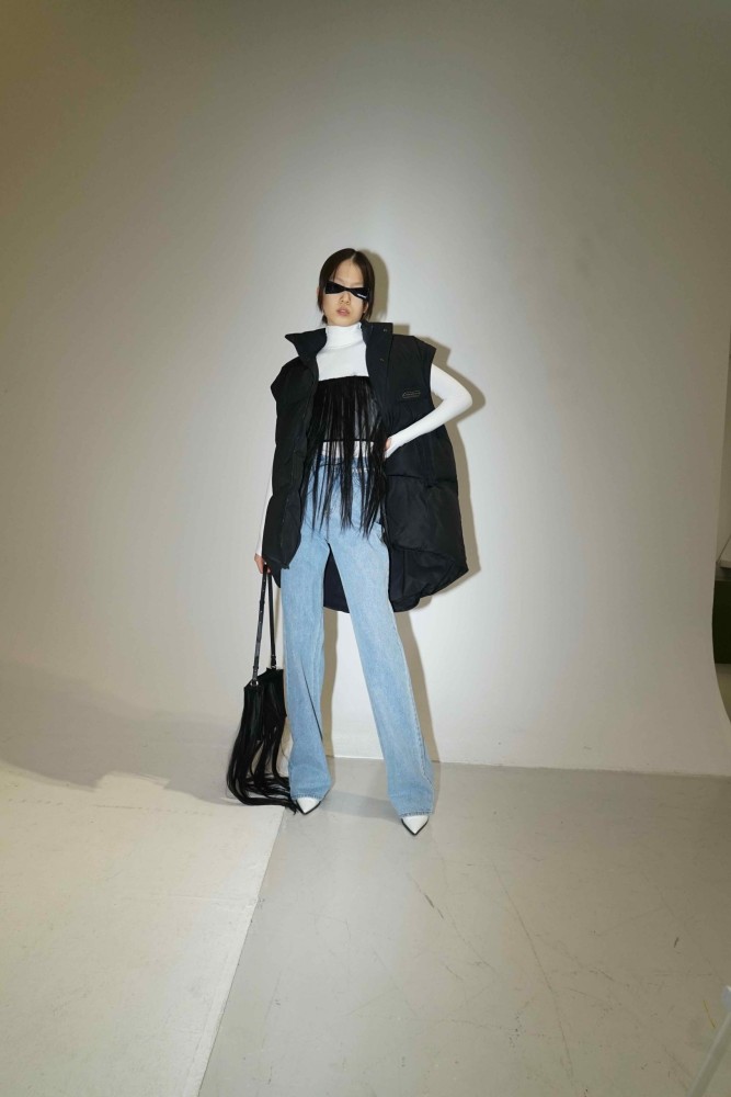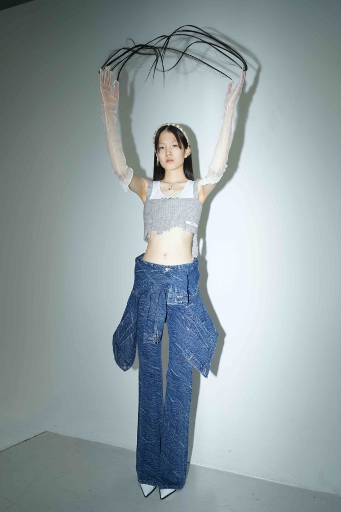 I also enjoyed interpreting this idea by mixing it with our signature pieces like classic tailoring with playful details or wearable casual pieces like logo T-shirts and denim items. And of course, I bring some ideas from hanbok, Korean traditional clothing. It’s like playing a game for me when I develop the collection that way.