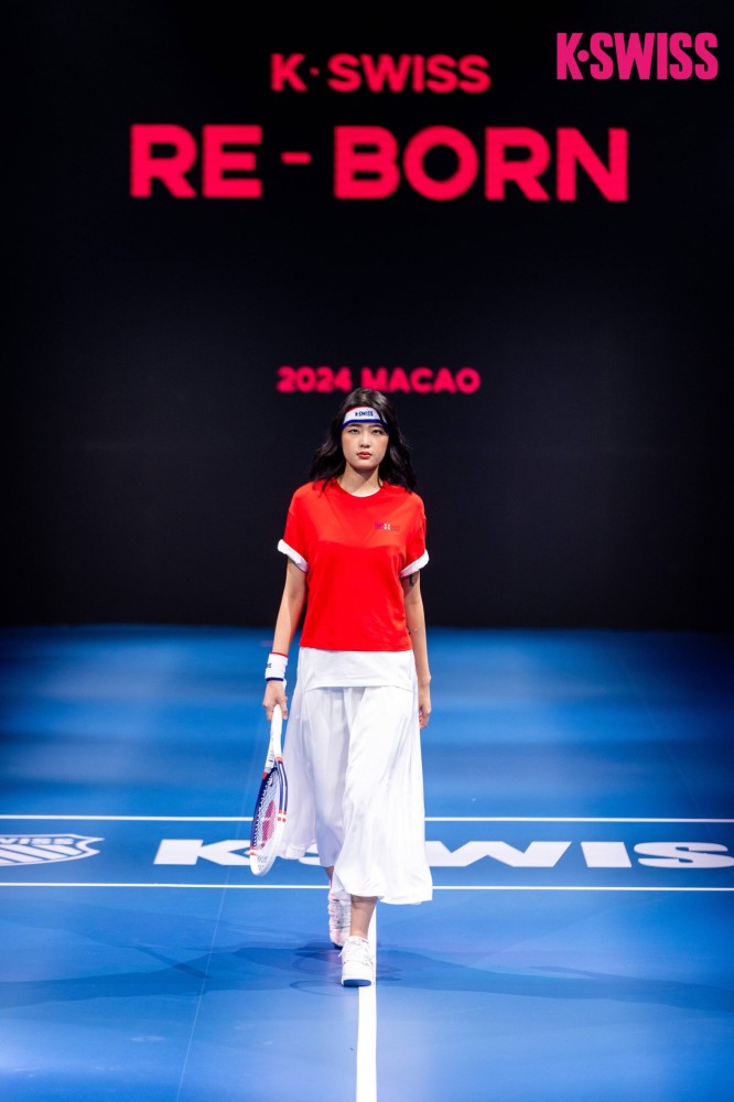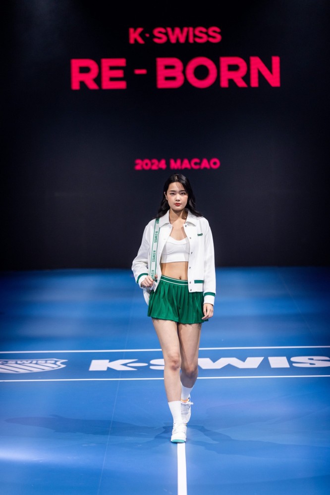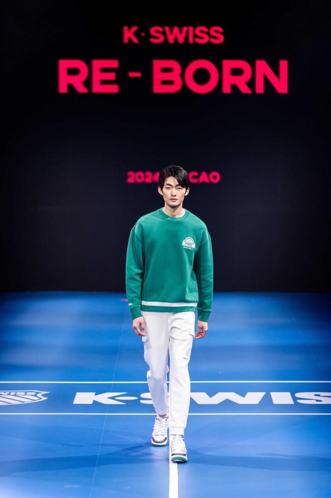 The Re-Born 2024 new series of fashion shows showcases the high-end tail of sports fashion while exuding the brand’s new charm. A giant tennis court is used as the stage for the fashion show to show the uniqueness of K-Swiss with tennis in its genes. Pieces from both the Club series and Court professional tennis series were on show during the catwalk.