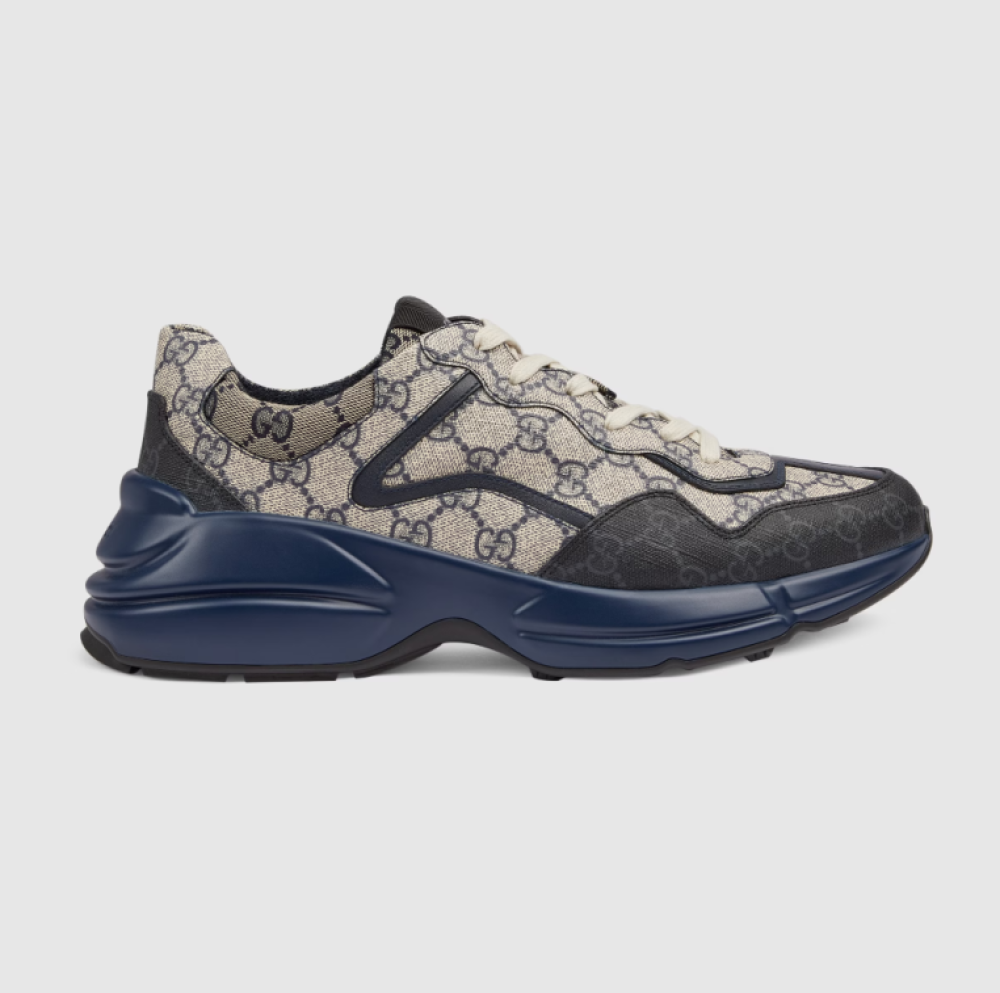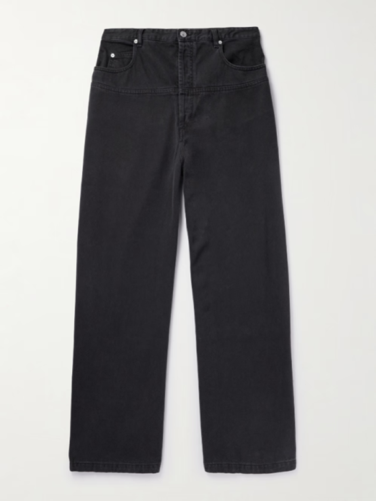 Bottom: Black denim jeans _ Isabel Marant from Mr Porter; Blue leather-trimmed monogrammed canvas sneakers _ Gucci