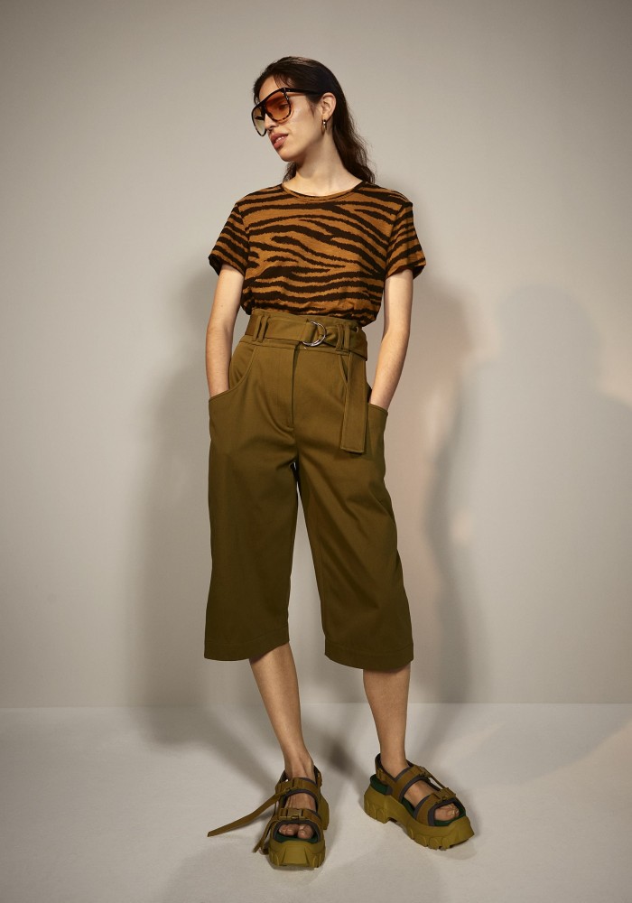 Cutout tiger-print slub cotton-jersey T-shirt & Belted cotton-twill shorts -