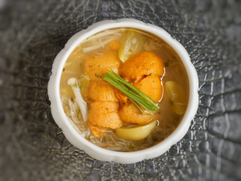 Working together through every step of the process, from design to execution to refinement to delivery, is what, in Cheung’s eyes, truly defines a four-hands dinner. And it’s this principle that guided their every action. “Through this experience, I learned, of course, about the differences in Chinese and French-slash-Japanese cuisine. But more than that, I learned how to really collaborate with another chef to create a four-hands dinner,” he says. “I participated in one a long, long time ago, and I’ve gone to different four-hands dinners as a guest. And one thing that I’ve noticed is that very often it’s just two chefs coming together doing their own thing, putting it on one menu and calling it a four-hands dinner. But that’s not what it is. So for Konishi’s and my four-hands dinner, one thing that we absolutely made sure of was that everything had to be a result of the two of us working together.”