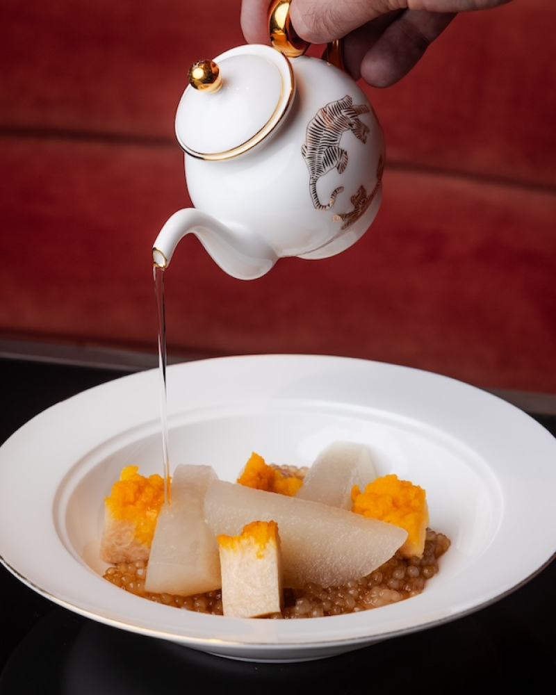 Lai Ching Heen at Regent Hong Kong presents a limited-time Pu Er Tea Tasting Menu in a celebration of Chinese tea culture and culinary innovation. Curated by executive chef Lau Yiu Fai, head chef Cheng Man Sang and tea sommelier Kelvin Mok, the menu commences with a welcome tea of Sparkling Golden Oolong with Lungan Honey and the Lai Ching Heen Combination comprised of Baked Agaricus Mushroom Bun; Crispy Ball with Crabmeat, Pomelo and Lychee; Baked Black Pepper Wagyu and Lotus Root Puff Pastry; and Smoked Abalone in Puff Pastry with Supreme Tea Leaves.