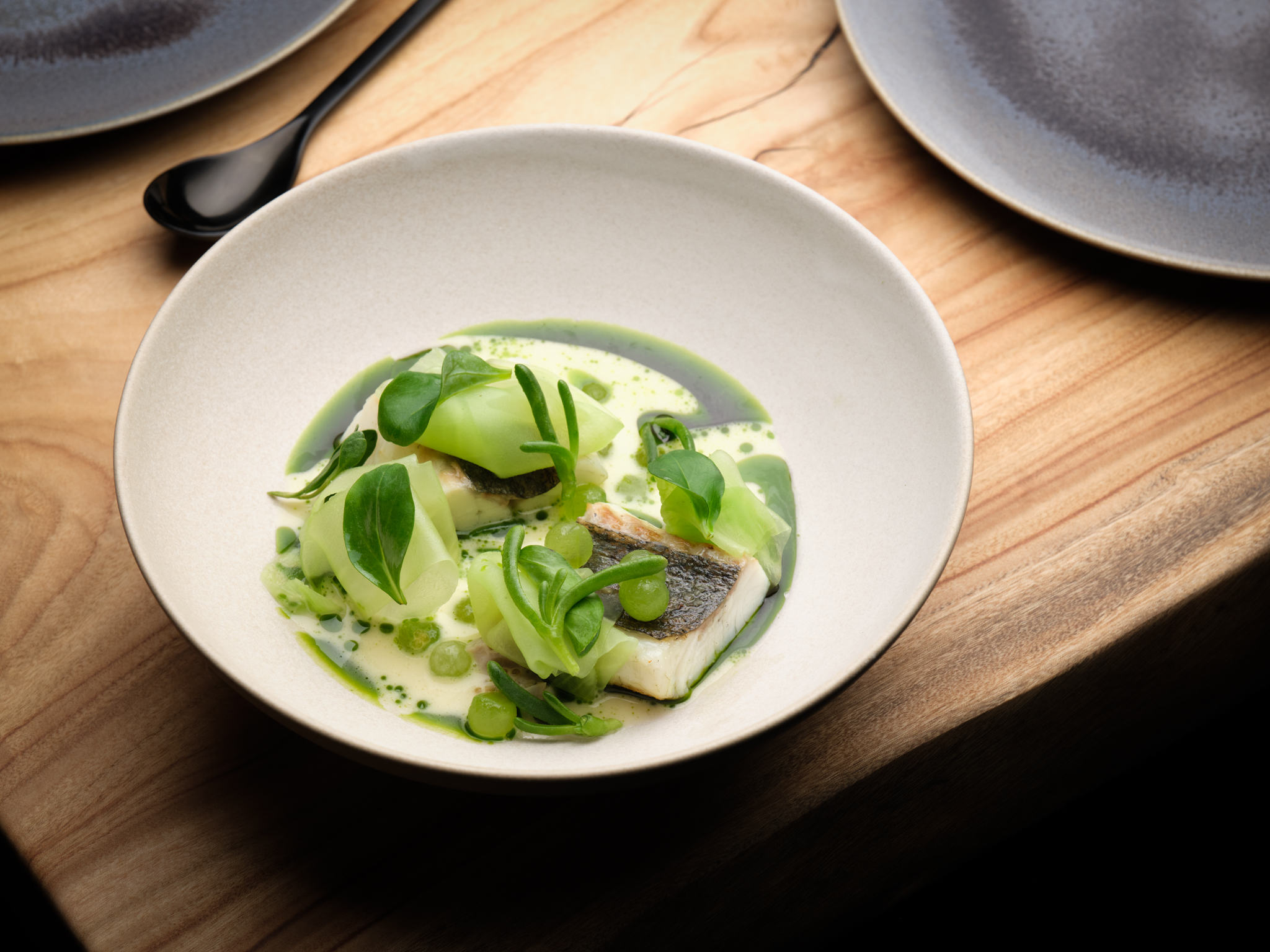 Take the Razor Clams with Dual Pepper Infusion. Steamed razor clams, a Cantonese classic, are slow-cooked and paired with a charred Hunan chilli sauce for a distinctive Hunan twist. redefines the classic Cantonese steamed razor clams with a distinctive Hunan twist. Then there’s the Steamed Cod with Chinese Chives and Sichuan Pepper, which marries the familiar Cantonese steamed technique with the bold flavours of Sichuan seasoning.