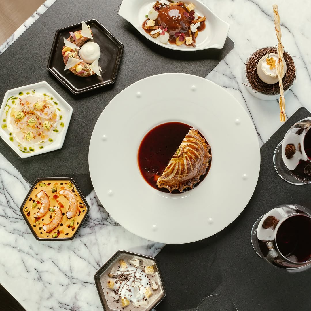 Main courses are bold and flavour-forward, like the Prawn Risotto with Fennel & Aniseed Shellfish Juice and Beef Fillet & Foie Gras Pithivier. Those looking for a sharing-style feast can opt for the Dover Sole à la Grenobloise or the Argentinian Grain-Fed Prime Rib.