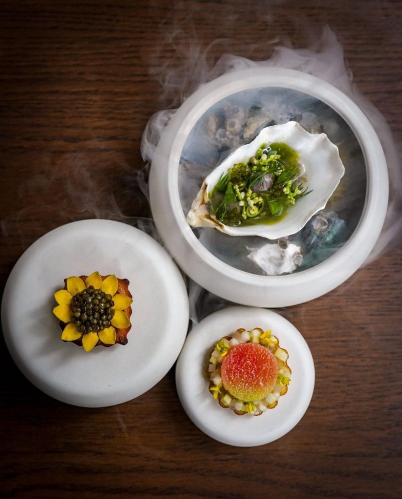 Ankôma, helmed by Hong Kong-born chef Frankie Wong, captures the essence of spring in his new 10-course tasting menu. It begins with the Zuwaigani, a snow crab tartlet with sherry vinegar sheet and battera kombu floss. To follow is Unagi, with foie gras mousse on brioche French toast; Saba, a cured fatty mackerel cured complemented by a zesty green apple and jellyfish salad; and lightly torched Hokkigai, accompanied by ratatouille consommé, chipolata sausage, and coriander. Then, indulge in a buttery pan-fried Hokkaido scallop; a Pasta dish of caviar atop angel hair pasta infused with white truffle paste; lava stone-grilled Lobster; baby Lamb saddle; and roasted local Three Yellow Chicken. To end the set will be a Pistachio dessert and seasonal fruits.