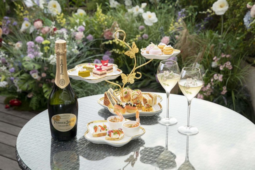 Together with the renowned Perrier-Jouët, The Blooms by Épure has launched a floral-themed afternoon tea set, showcasing a delectable array of sweets and savouries that capture the essence of nature’s rejuvenation and celebrate the joyous arrival of spring. Like, the cherry tomato and mascarpone cheese with champagne jelly; red prawn and trout roe with tropical champagne salsa; and strawberry champagne delight. Completing the experience are other delectable French finger pastries such as smoked salmon and potato with crème fraiche; Spanish ham and butternut squash; mini croque monsieur; macarons; and, of course, scones.