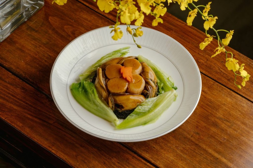 Prosperity and abundance are the key words for the eight-course Chinese New Year Premium Set Menu, with deep-fried shrimp paste puff with honey-glazed barbecued pork, and braised South African abalone 4 heads, and shiitake mushroom with abalone sauce.