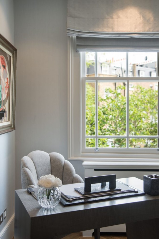 “A sculptural desk chair adds a touch of glamour – fluted upholstery or metal tacking both work well.”