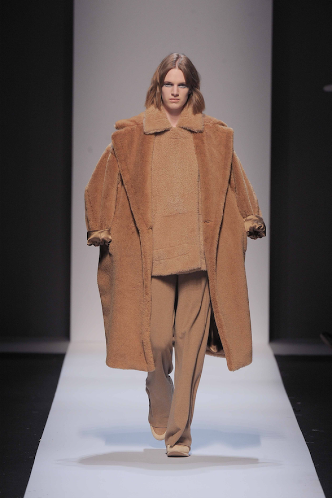 Thus, a journey to bring back this lost art began. The Max Mara team worked with an Italian supplier to redevelop the technology to produce a unique faux fur of pure camel hair on a base of silk. The resulting plush, camel, faux-fur, cocoon-cut cover-up made its catwalk debut in 2013 and the rest is history.