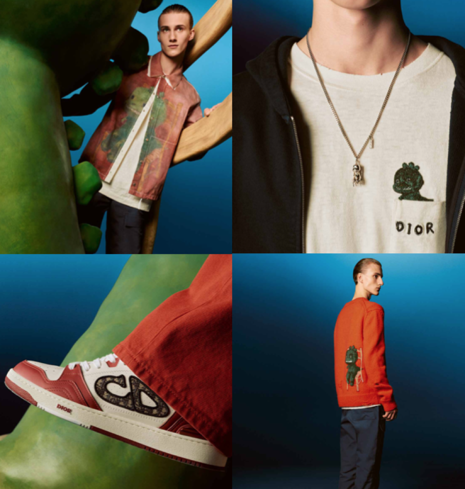 Dreamed up by artistic director Kim Jones and the Japanese contemporary artist known for his work in sculpture and ceramics, Dior & Otani Workshop launches this month as an exclusive capsule. The joyful men’s collection is punctuated by Tanilla, a small green monster conceived by Otani Workshop and which appears on refined sweaters, short-sleeved T-shirts, bomber jackets and new tennis shoes the B33 High Top. The irresistible creature also comes to life on the Dior Oblique toile and on a stylised adaptation of the Dior logo, while the colour palette is dominated by red in a nod to Monsieur Dior, who called it “the colour of life”.