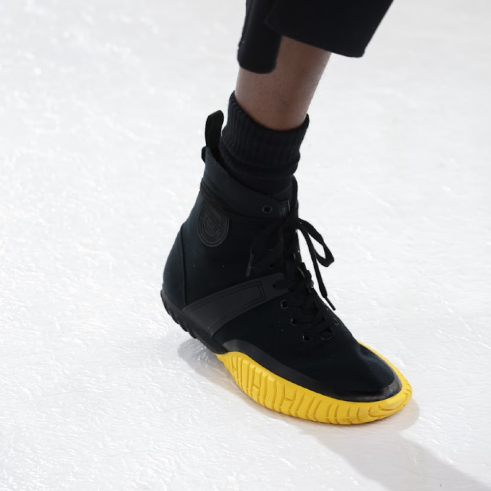 The sneakers in this collection feature new designs with different heights, be it slip-ons, high-cuts, or ankle boots. Each have coated canvas uppers and contrasting bold yellow on the front of the sole. There are also leather boots in yellow and black, along with nude laced platform sandals that can be tied at the ankles in Nappa leather or velvet. To carry everything, there is a lightweight nylon mega shopping bag that comes in the iconic Onitsuka Tiger house colour.