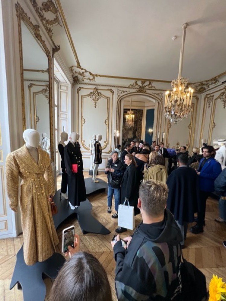 My third day navigating Paris fashion week started off with a visit to the Schiaparelli showroom in Hotel D’Évreux – adjacent to the iconic Place Vendome. Within the walls of the 18-century building, Texas-born fashion designer Daniel Roseberry presented his extraordinary ready-to-wear collection. In typical Schiaparelli fashion, the collections shined with exquisite gold details adorned on garments that effortlessly elevated day and evening wear.