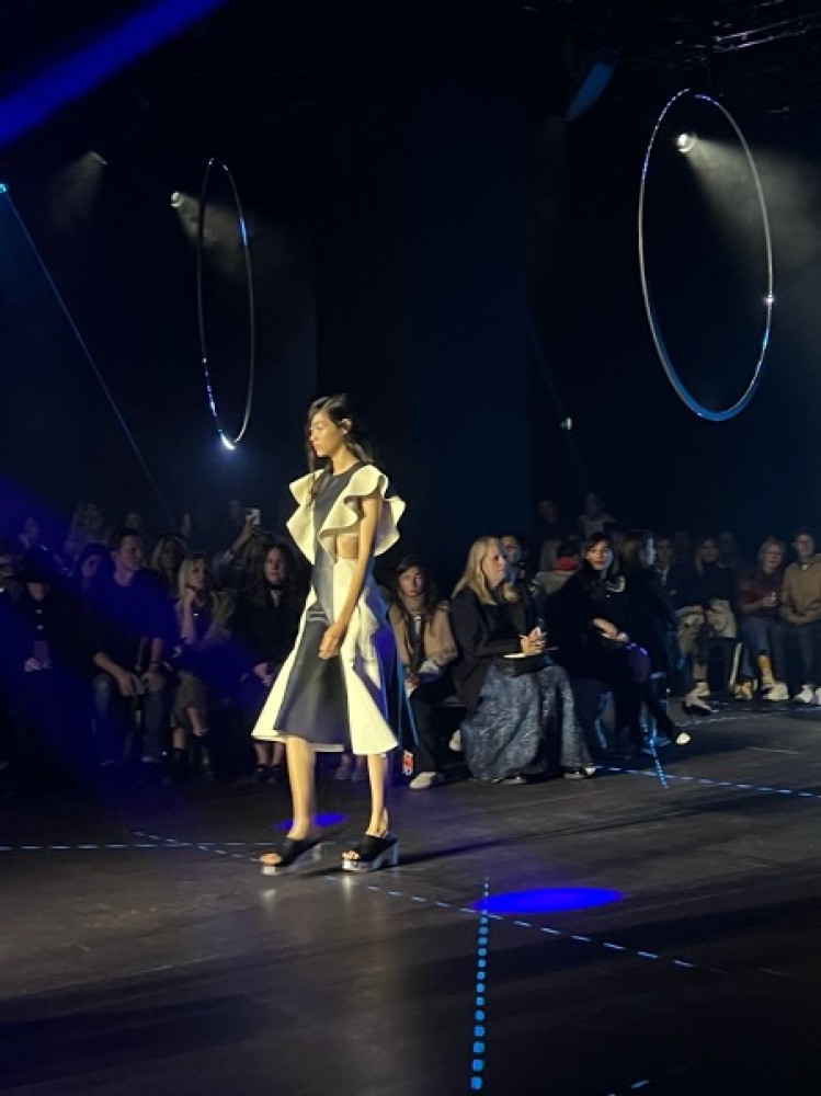 After briskly entering the Pavilion Vendôme, I found my seat that was part of a greater Circular shape arranged to mimic the tokamak reactor. As models started to walk the runway I began to notice the knotted details on garments and bags that had exaggerated lace details. An industrial feeling swept through the collection and could be seen through boxy shoulders, metal fastenings, and oversized eyelets. This Chloé collection had a strong current that flowed throughout garments, just like the energy that inspired its creation.