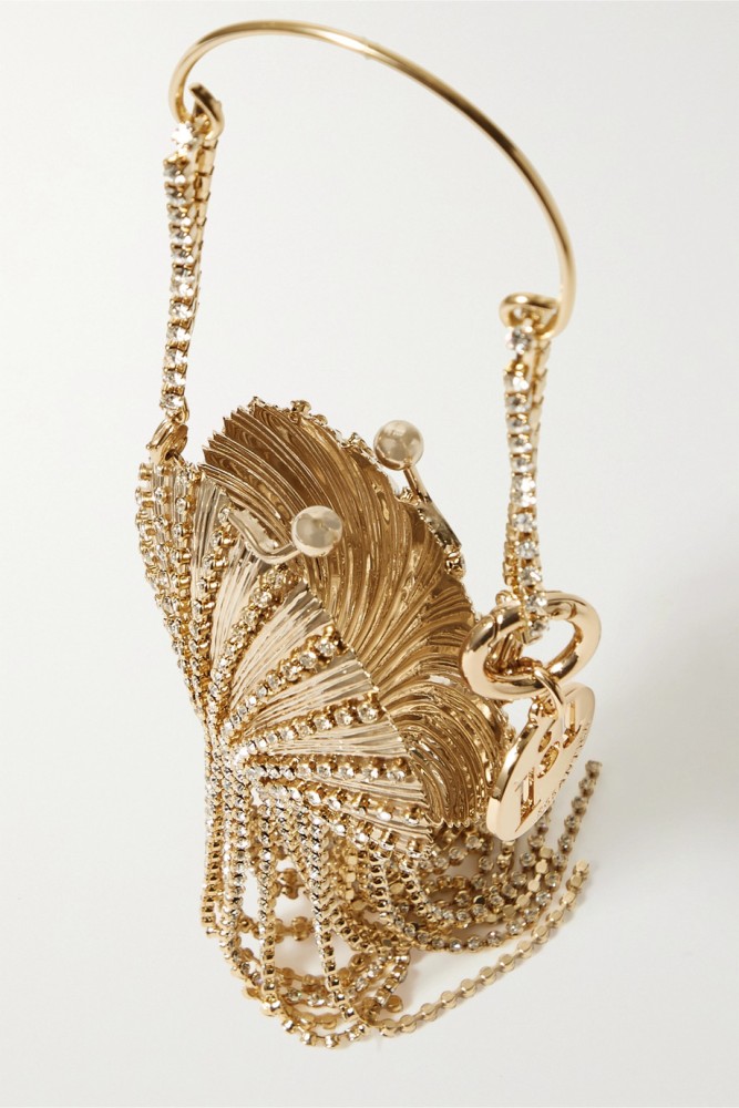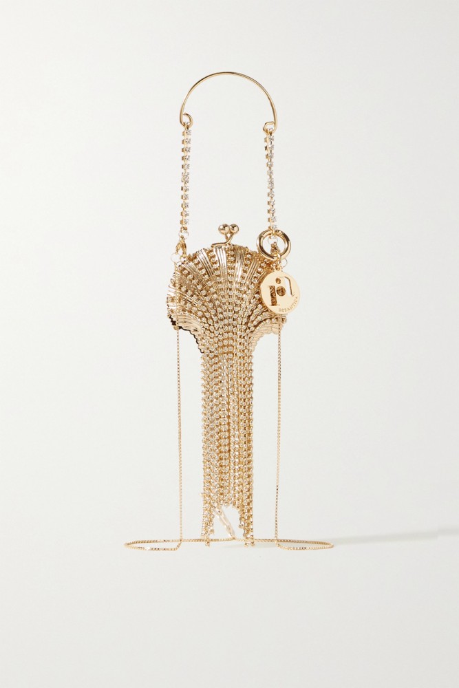 For “extra” mums: Baby Shell fringed crystal-embellished gold-tone shoulder bag by Rosantica