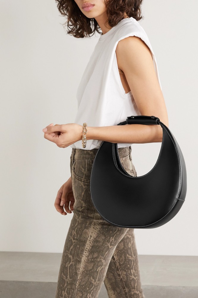 Available in two different colours, Staud’s sculptural Moon bag is named for its crescent shape. Made with smooth cow leather with contrasting stitches, it exudes a minimal, stylish feel. The bag also includes a small zipper compartment and a magnetic-fastening tab at the top so she can slip her iPad in there easily.