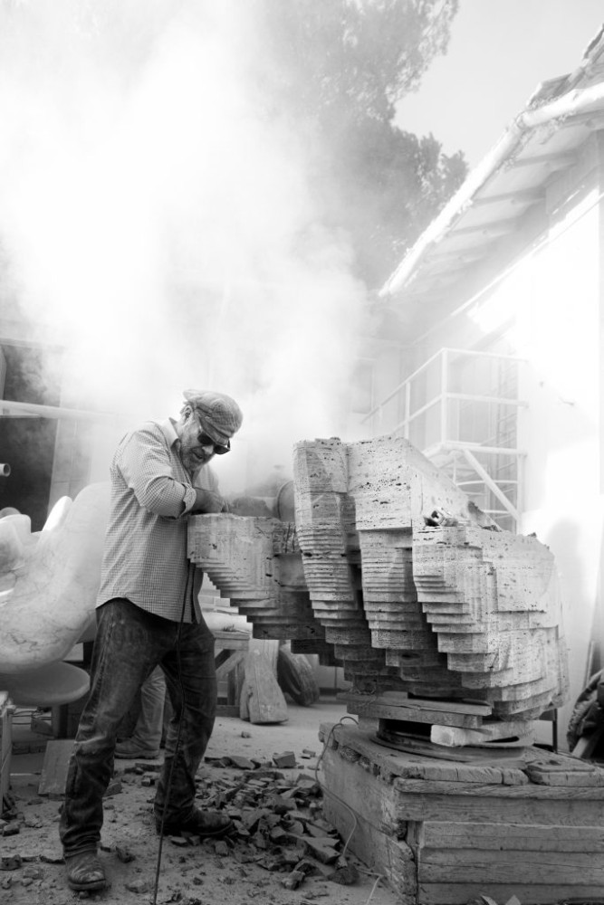Fortune has smiled on Bourieau throughout his career. Following his classical training with the prestigious French stonemasons guild, Les Compagnons du Devoir et du Tour de France, he helped to restore the Louvre in the 1990’s, found himself in Pietrasanta in Tuscany – in the very same atelier where acclaimed 20th-century artist Isamu Noguchi used to sculpt in this Mediaeval town considered the capital for transforming stone and which once served as a marble source to the great Michelangelo – and consulted for the Vatican.