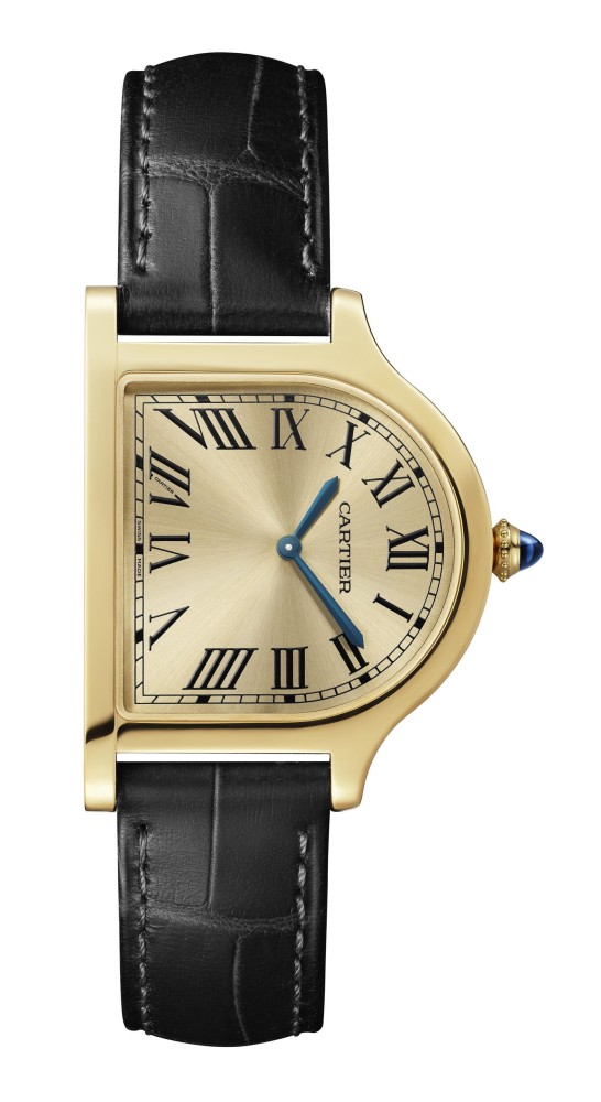 The Cloche de Cartier first appeared in 1920, named after the cloche (bell) shape because, when placed horizontally, it resembles a service bell. The Cloche has been revived for 2021 as part of Cartier’s Privé Collection. The new model is powered by the 1917 MC mechanical movement and is available in three case metals: yellow gold, pink gold and platinum. Each model is numbered and limited to 100 units.