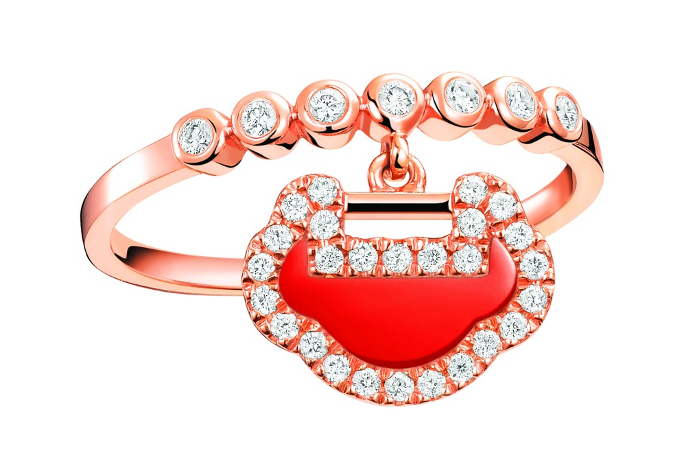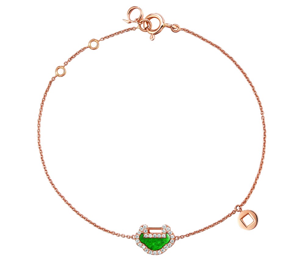 Now, the Petite Yu Yi collection takes the same idea in new directions with 18K gold jewelry embellished with precious jade for added cultural significance. Along with necklaces and bracelets in the vibrant green stone, an 18K rose gold ring is offered in jade or warm red agate to compliment the ensemble.