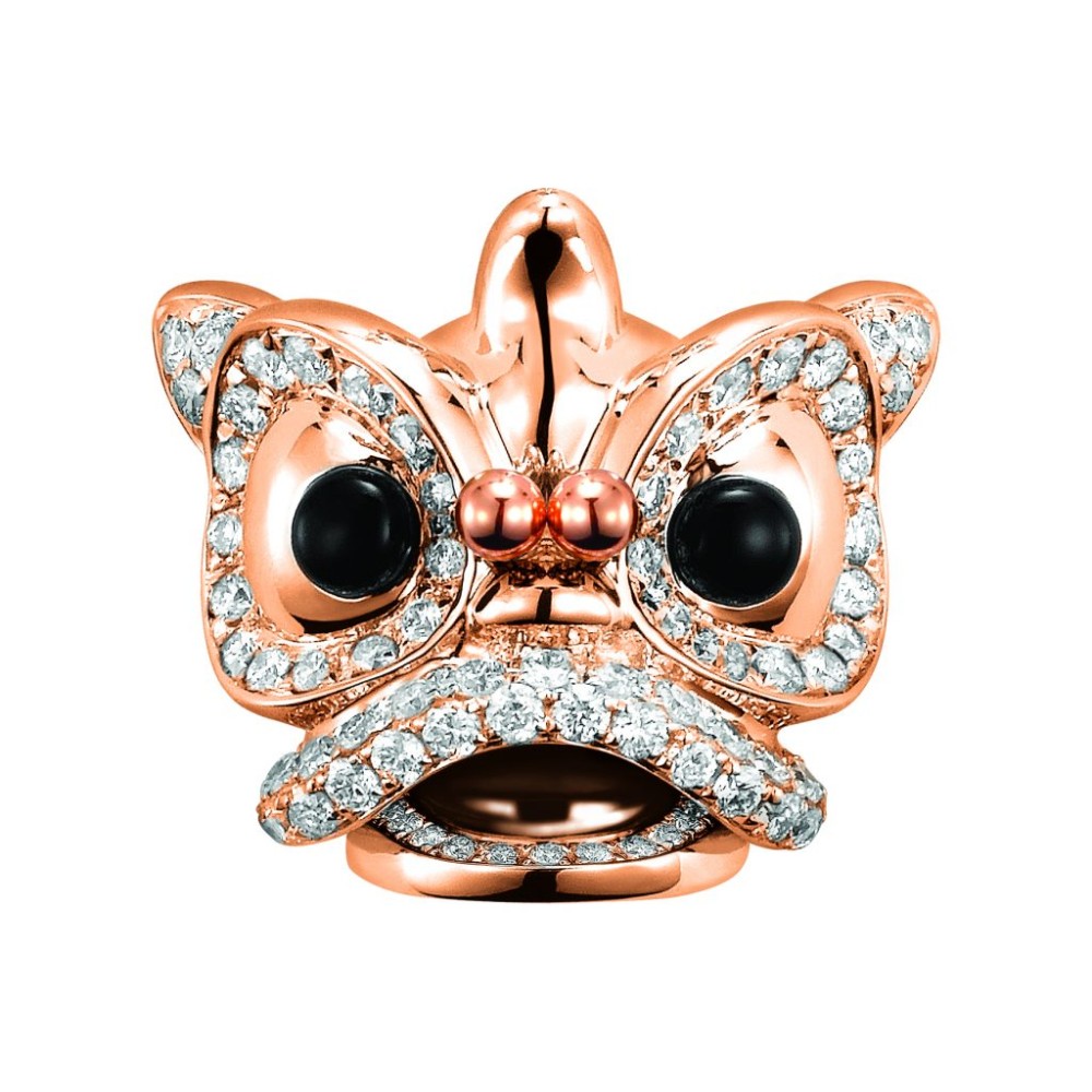 Living up to its name which means ‘to play’ or ‘have fun’, the Xi Xi collection’s designs are as playful as they are beautiful. The swinging head and free-rotating representation of the lion dance’s silk ball are featured elements of the lucky 88-piece limited edition Xi Xi necklace. An intense contrast to the rest of the collection and its own rose gold construction, the black diamonds of the large Xi Xi pendant with black diamonds and onyx captures the commanding spirit of the lion.
