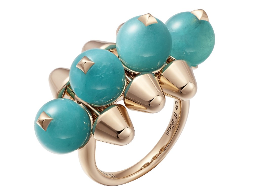 Clash de Cartier, with its geometric studs and freely moving pieces, is one of the maison’s more whimsical designs. This limited edition ring, which comes in amazonite and 18k pink gold, can be combined with more Clash de Cartier bands either on different fingers or stacked on one.