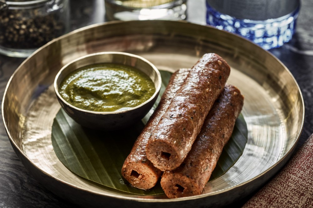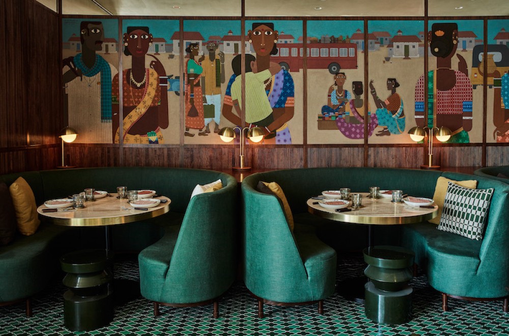 Authenticity spills over to the interiors of the restaurant, the design accents, and the serving bowls and cutlery. The restaurant’s focal point is a custom-made wall mural by the Hyderabadi contemporary artist Kandi Narsimlu, presenting a vibrant narrative of bustling Indian street life, where the ritual of roadside chaat forms part of the cultural fabric of towns and cities, transcending social strata to unite people around the shared pleasure of eating.