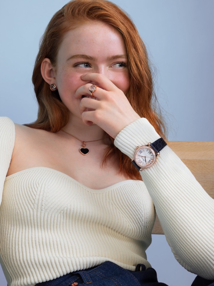 From Broadway to Stranger Things, Sadie Sink has proven her versatility and talent in the acting world. Now she’s teaming up with luxury jeweller Chopard to model an array of chic and sporty styles from their new Happy Diamonds line.