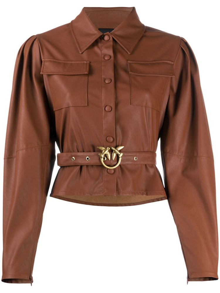 Pinko faux leather belted shirt, available on Farfetch -