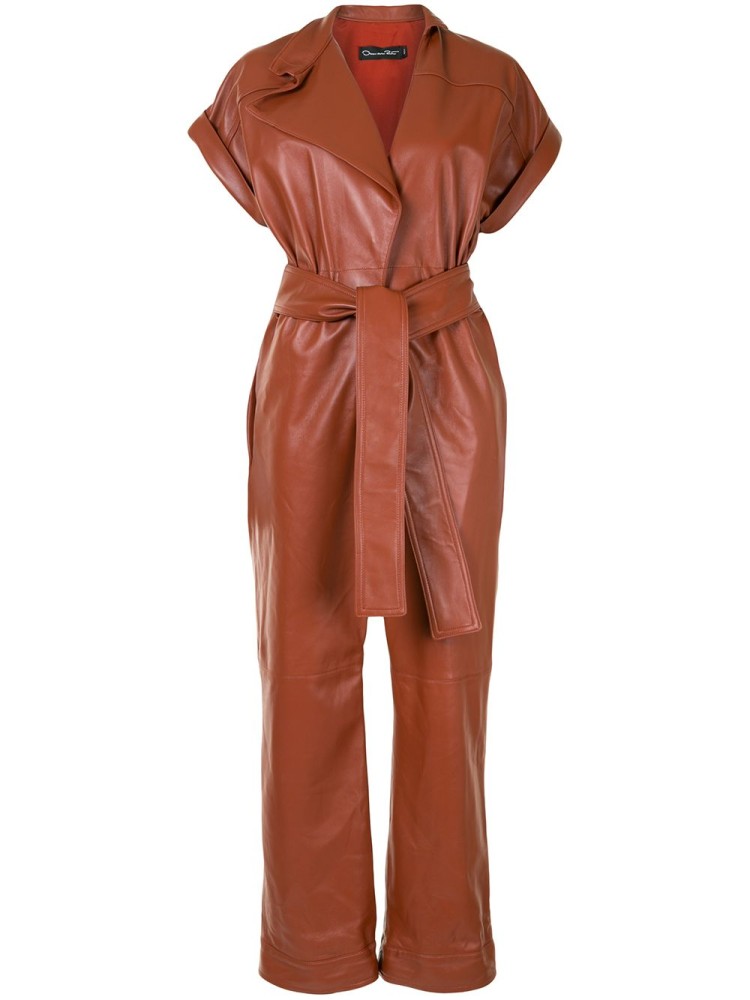 Oscar de la Renta leather belted short-sleeve jumpsuit, available on Farfetch