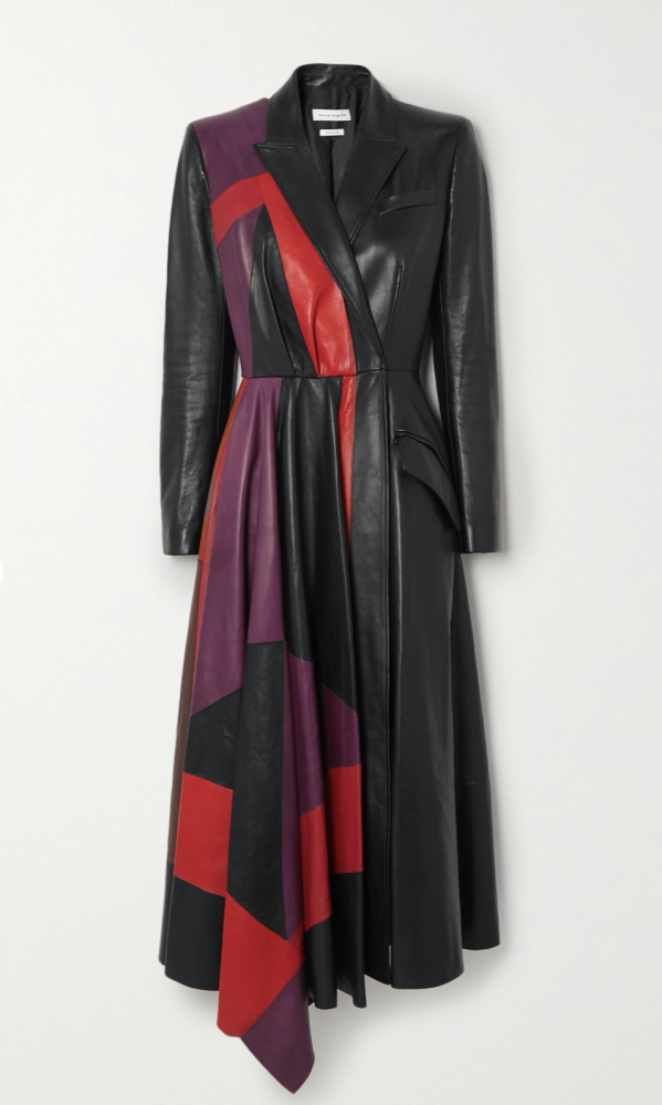 Alexander McQueen Asymmetric color-block leather coat, available on Net-a-Porter -
