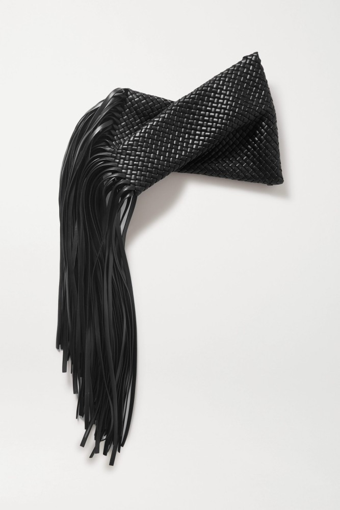 Bottega Veneta Fringe twisted intrecciato leather clutch, available on Net-a-Porter -