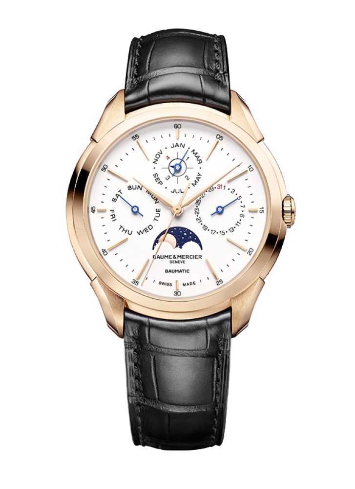 By indicating the date, the day of the week, the month and the phases of the moon while automatically considering the variable lengths of months and the leap year cycle, the Clifton Baumatic Perpetual Calendar deserves its place among the most complex watches with this complication. It requires no date correction before March 1st, 2100, a non-leap year.