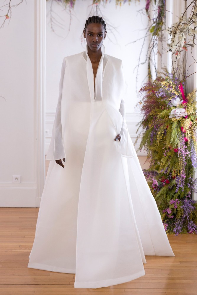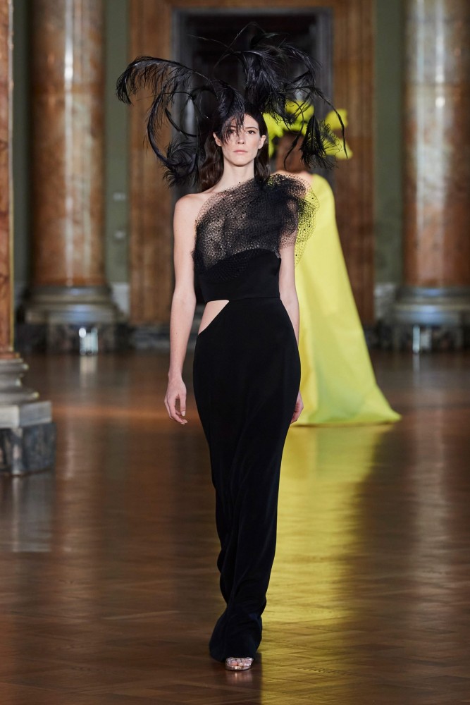 Perhaps the most structured of all the collections, the dresses and trouser suits in Dutch couturier Ronald van der Kemp’s arsenal had an artistic quality, but were also so photogenic they seemed destined for the red carpet. Although look closer and many of them were actually optical illusions, designed to look different from each angle thanks to the unique silhouettes and distinct fabrics used to make them.