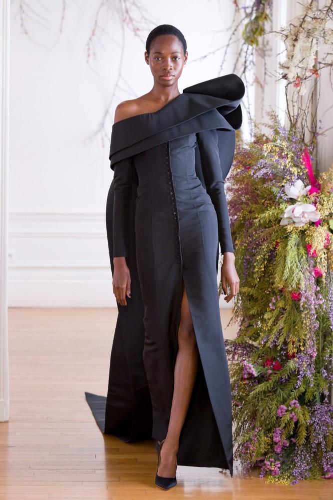 Elegant and refined, these were couture looks every woman would want to wear. Focusing on single colours in either scarlet, white, grey or black – one beautiful bubblegum pink trouser suit aside – it was a collection that used clever cutting to stand apart from the rest. Signature silhouettes included short puff sleeves, high collars and plenty of capes, bustles and trims that seemed designed with a red carpet in mind.