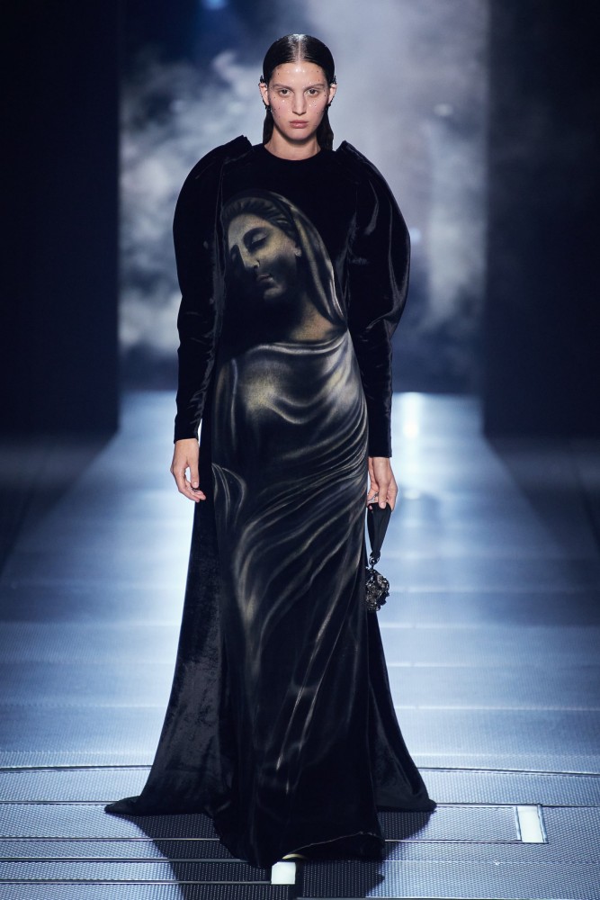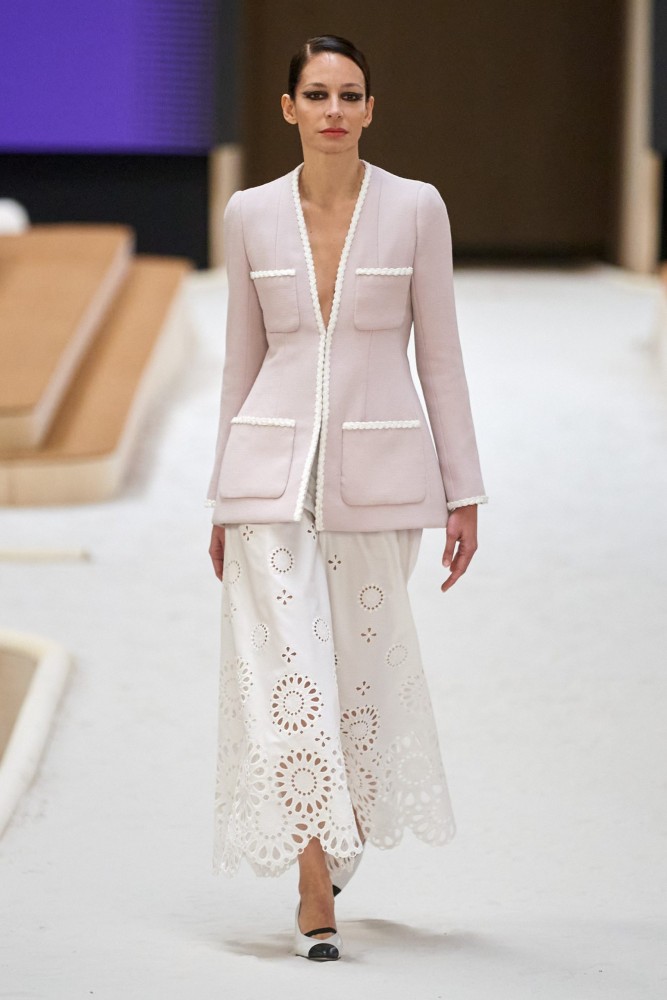 It doesn’t get much more Parisian than this collection, which was shown at the Musee Rodin and filled with beautifully cut double-breasted coats, chic black capes, and cream and grey suiting. Where other brands are embracing NFTs and the metaverse, creative director Maria Grazia Chiuri is doubling down on the hand-crafted elegance couture is known for, showing her designs alongside tapestries that took 380 artisans 280,000 hours to embroider.