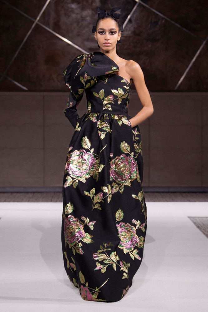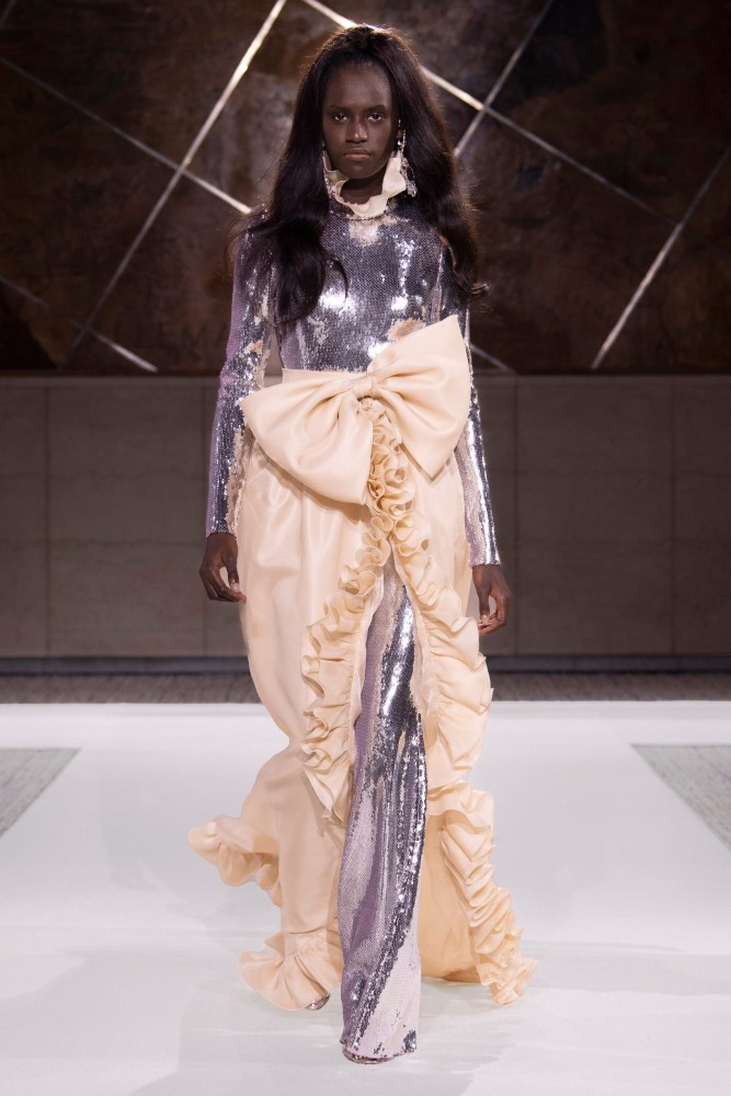 Aiming to promote diversity across the board, this collection was shown on models of all sizes, ages and ethnicities – the former two being a rare sight on the couture catwalks. As for the fabrics and the designs, constructed as joyful as possible, they included structured taffeta gowns with Disney-style bows in bright colours, suits made of intricate embroidery, feathered hot pink gowns and mini dresses designed to titillate. Modern, relevant and very sexy – this collection was a triumph.
