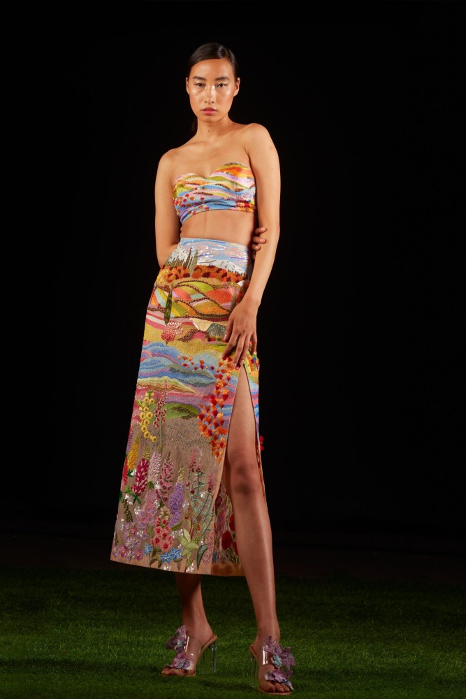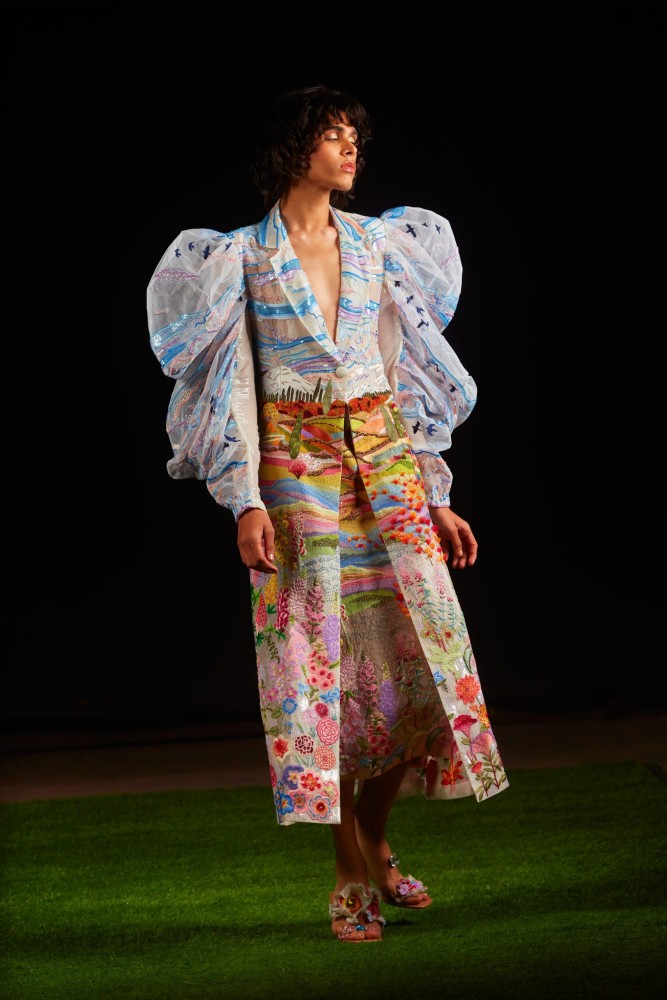 Texture is clearly everything to the Indian designer who created a beautiful floral collection that recalled walking in a spring woodland. From short, brightly coloured dresses that mimicked Dutch tulips to extraordinary orange confections that looked like marigolds blowing in the wind, this was one of the boldest – and one of the loveliest – fashion week collections.